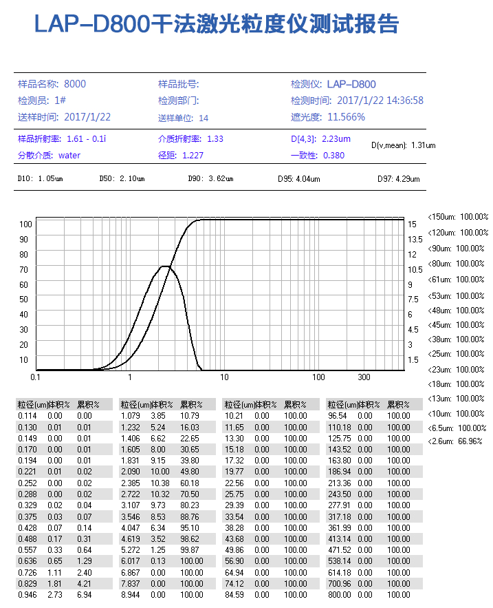 LAP-D800激光粒度分析儀主要性能特點: