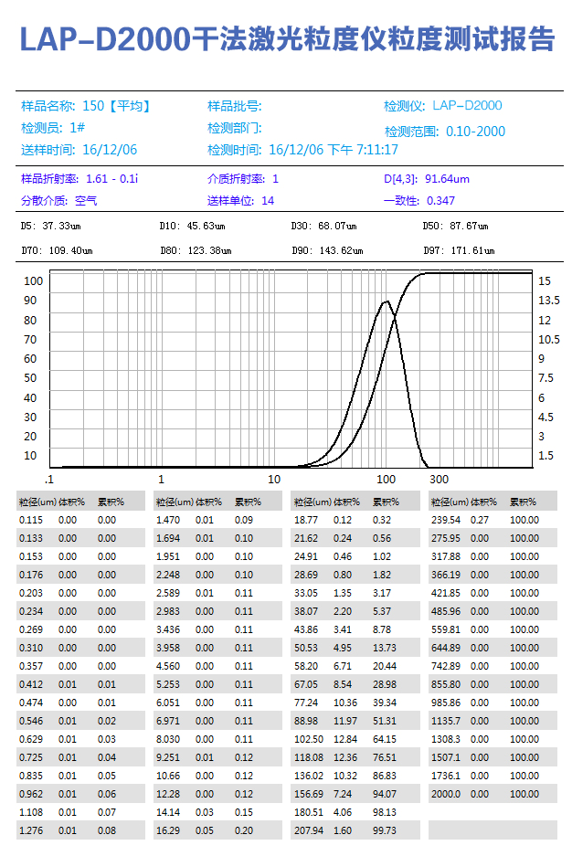 LAP-D2000屬于干法全自動激光粒度儀,被廣泛應用到粉體行業,我公司針對不同行業設計了不同模板,客戶可根據自己需要選擇水泥模版、磨料模版等等。