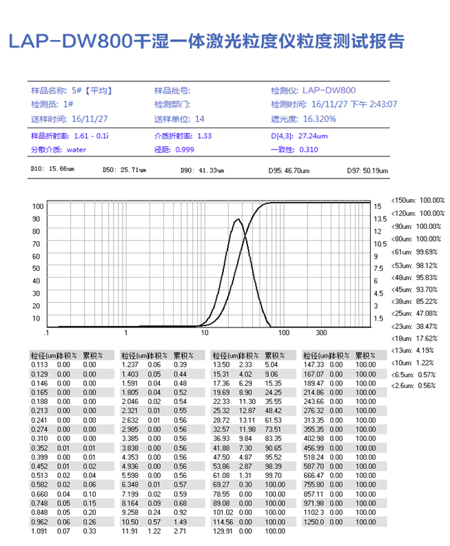 | 自行DIY | 用戶自定義要顯示的數據,根據粒徑求百分比、根據百分比求粒徑或根據 |