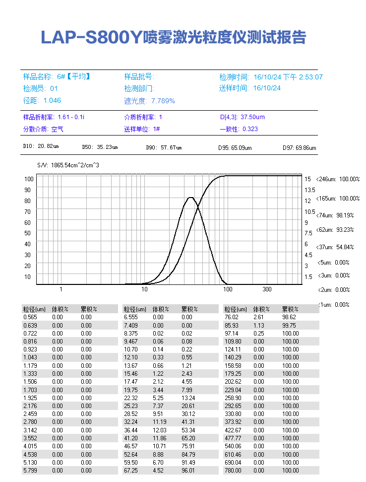| 統(tǒng)計(jì)方式 | 體積分布和數(shù)量分布,以滿足不同行業(yè)對于粒度分布的不同統(tǒng)計(jì)方式 |