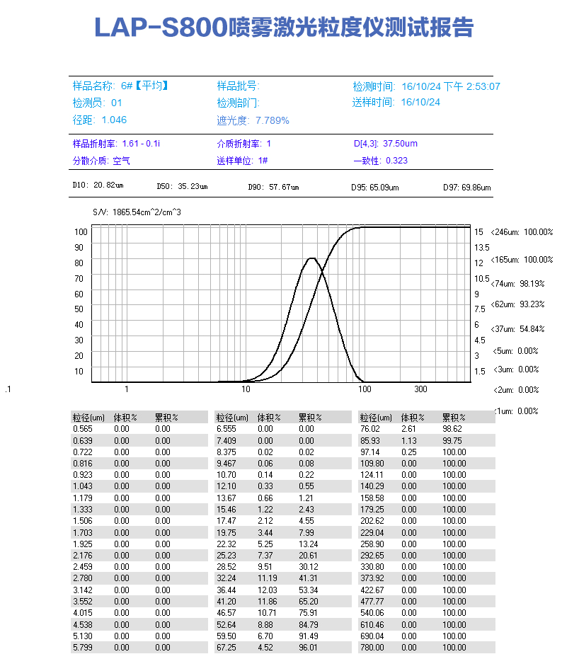 LAP-S800噴霧激光粒度分析儀主要性能特點: