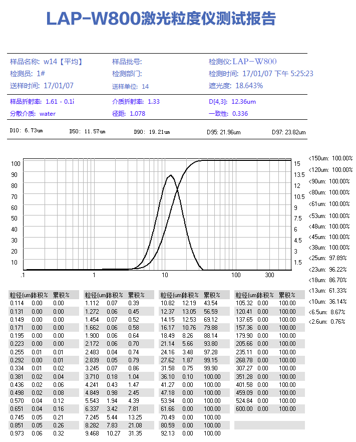 | 統計方式 | 體積分布和數量分布,以滿足不同行業對于粒度分布的不同統計方式 | |