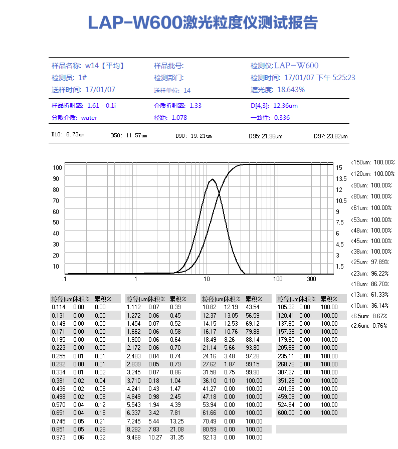 | 統計方式 | 體積分布和數量分布,以滿足不同行業對于粒度分布的不同統計方式 | |