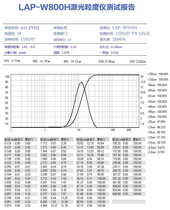 | 統(tǒng)計方式 | 體積分布和數(shù)量分布,以滿足不同行業(yè)對于粒度分布的不同統(tǒng)計方式 |